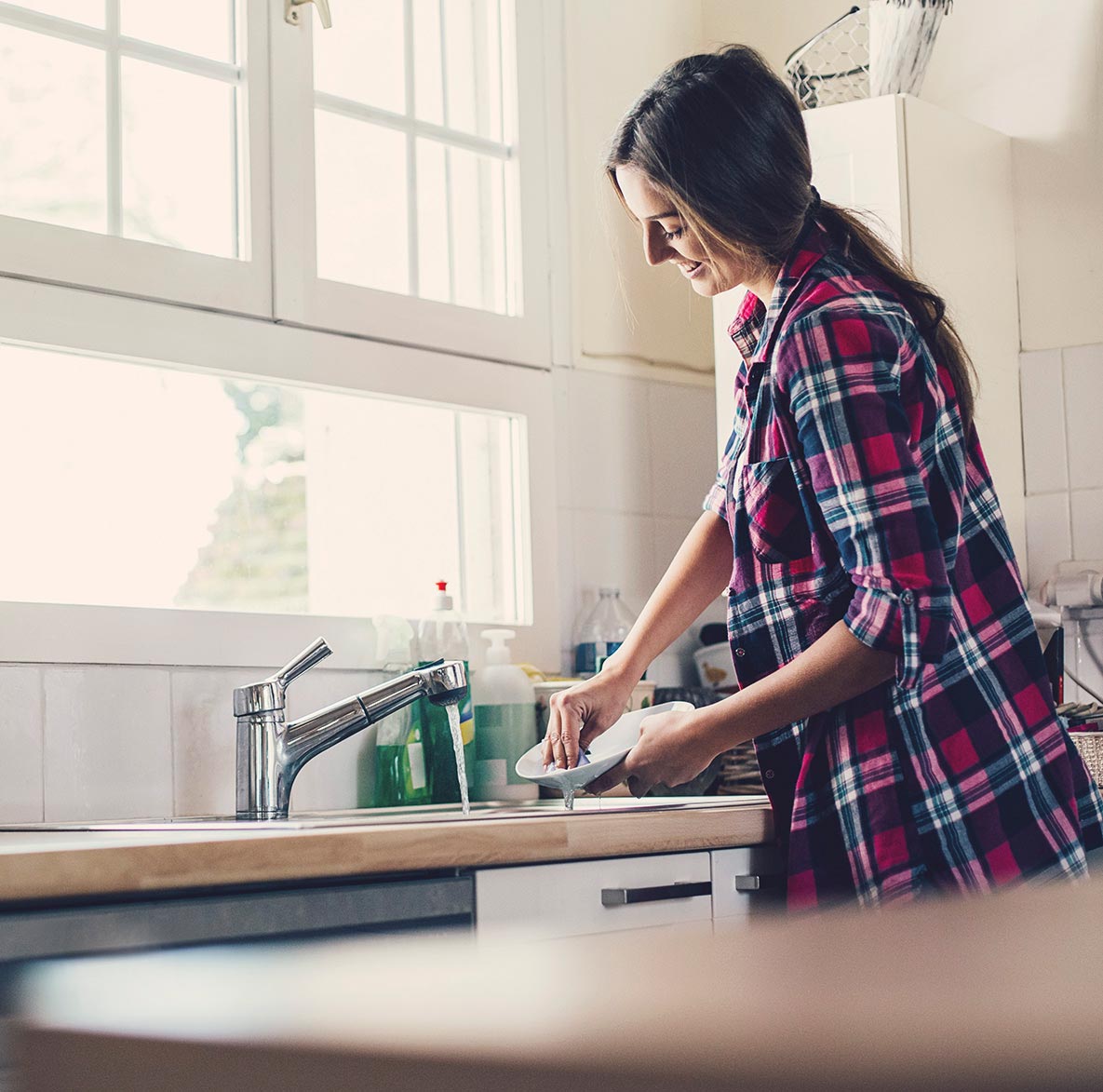 Aplica directamente el producto y deja actuar por un minuto. Luego lava los trastes y enjuaga con agua limpia.