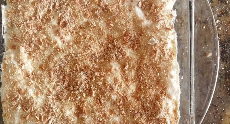 Para finalizar ralla algunas galletas para decorar un poco la superficie del postre y refrigera hasta que cuaje la mezcla.