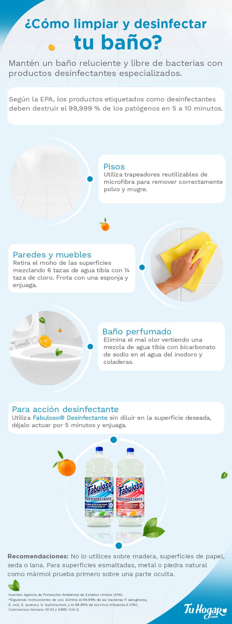 Además, te recomendamos complementar tu rutina de limpieza con estos tips para eliminar el sarro del baño fácilmente y cuidar tus pisos de madera.