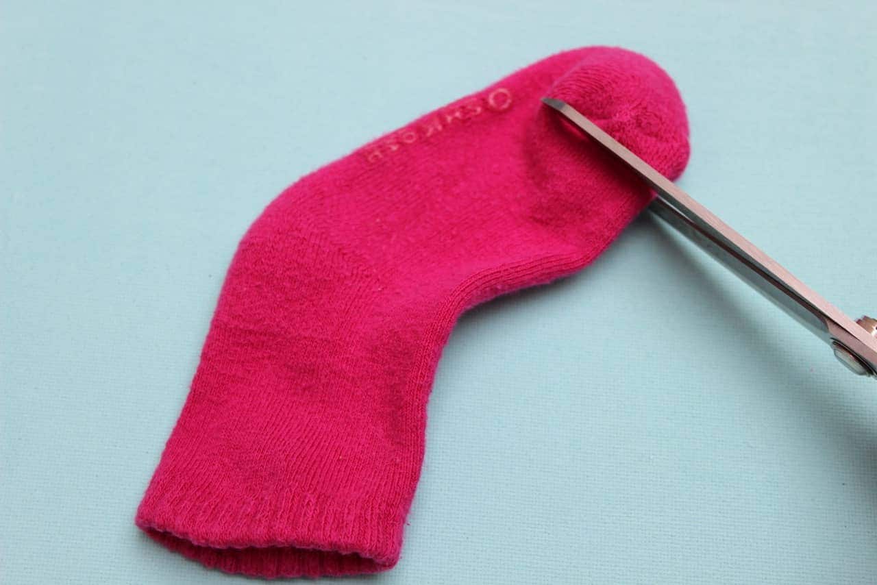 Corta en cada media la parte de los dedos para que quede abierta por ambos lados. Yo utilicé medias pequeñas que ya no le sirven a mi hija para darles un nuevo uso a las de mis colores favoritos.